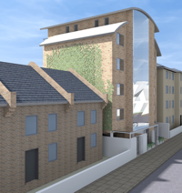 This site is in fact a car park, and the client wanted to develop above to provide eleven new apartments. There are many car parks to be found in Tower Hamlets which were required as part of the Docklands Development Plan during the 80s and 90s. Again the Government density requirements allow for additional units to be built on existing developments. Like many inner city Boroughs Tower Hamlets has a ‘no tolerance’ policy to car parking spaces in new developments, particularly on small scale developments such as this one.